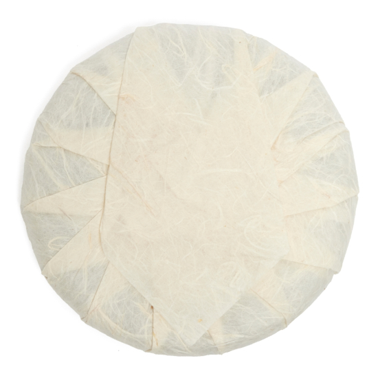 Im letzten Schritt werden die Blätter in Cakes gepresst. Dafür werden sie kurz mittels Wasserdampfs erhitzt und dadurch formbar gemacht. Sie werden dann gewogen und portioniert, in Tücher gelegt und dann gepresst. Für unseren Sheng Pu Erh wurden die Cakes von Hand unter Zuhilfenahme schwerer Steinblöcke gepresst und nicht mit der mechanischen Pressmaschine. Infolgedessen sind die auf diesem Weg sehr sanft gepressten Blätter noch sehr intakt und nahezu unbeschädigt.