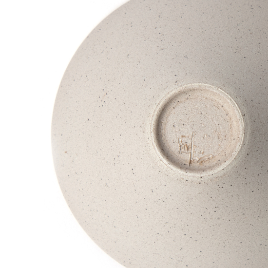 Apart from the red Shudei clay that Tokoname is famous for, Jinshu also uses white and black clays, sometimes mixing them together to produce unique results. Embracing materials and techniques indigenous to his hometown, characteristic Jinshu finishes include Mogake: wrapping seaweed around the clay before firing to produce fine, thread-like patterns; a spotted effect by sprinkling powdered oyster shells – a byproduct of local seaweed farming; as well as his signature matte finish using Chara: a coating with properties between a glaze and an engobe.