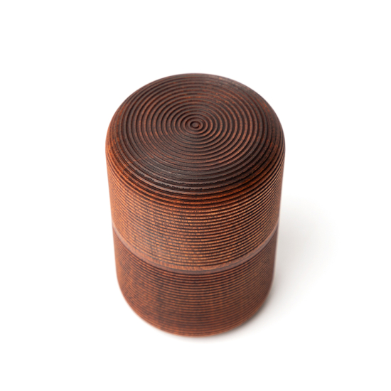 GATO MIKIO's KARMI series is based on sensuji (千筋), a decorative "thousand stripe" kashokubiki technique in which extremely fine concentric grooves are carved into the wood as it is turned on a lathe. This intricate technique and pattern are among the many famous Yamanaka kashokubiki, each of which requires special tools that are custom-made by the artisans.