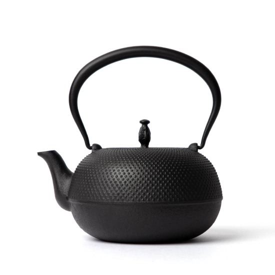 This Tetsubin is cast in a sand mould that is meticulously decorated with stamped or freehand motifs before it is fired at a temperature of around 1000°C to form a solid mould into which 1500°C molten iron can then be poured. Once the iron has cooled and set, the Tetsubin is removed from the mould and is coated on the outside with a varnish made from cashew nuts to increase the durability of the iron. To prevent rust from developing the Tetsubin is baked again, this time at 900°C, to create an oxide film inside the kettle in a process known as Kamayaki (釜焼き "iron pot firing") which is unique to Nanbu Tekki.. Oigen are particularly proud of their natural finishing that allows plenty of iron to be released when boiling water.
