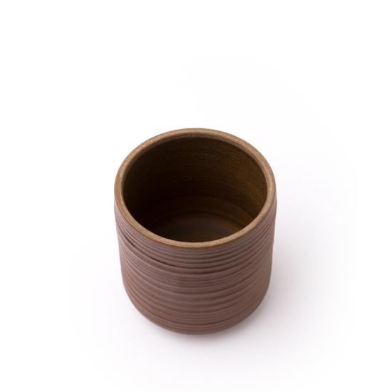 Beautiful handcrafted ceramic tea jar made from Nixing clay in a natural, earthy tone and decorated with a spiral carving. This single lid caddy made from a slightly porous clay is suitable for storing all kinds of Chinese teas including liu bao, pu erh, oolong, white and black teas.