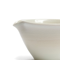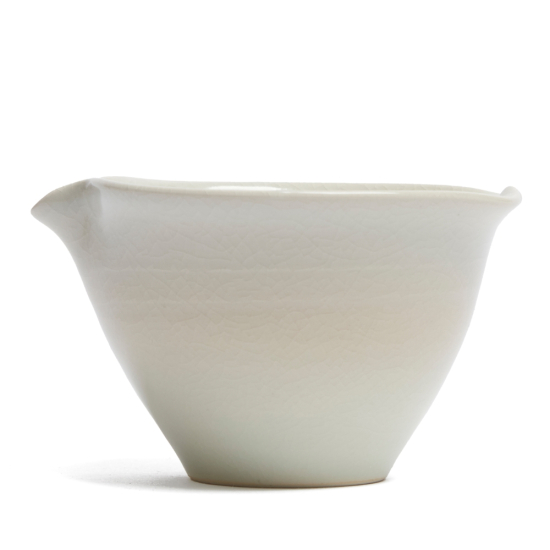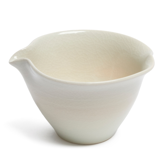 An exquisite Yuzamashi cooling pitcher, handcrafted by master Shigaraki-yaki potter Sawa Hozan, featuring a glossy ombré glaze in cream with a hint of peach, evoking the soft look of morning mist, or Asamoya (朝もや) in Japanese. Enjoy the changing Keshiki "scenery" of the glaze as the craquelure becomes more pronounced with use.