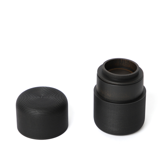Élégante boîte à thé en bois de bouleau laqué noir (Sumi 墨絵), tournée à la main, fabriquée par la prestigieuse manufacture japonaise de laque Urushi, Gato Mikio, située dans le célèbre village de Yamanaka Onsen. Cette boîte de la série Karmi est réalisée dans la forme traditionnelle Tawara (俵 botte de paille) et est dotée d'un couvercle ajusté pour une protection optimale des arômes. Capacité : environ 100 g.