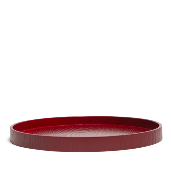 Plateau à thé rond verni d'un rouge profond, parfait pour servir les thés fins et la vaisselle de thé. Convient également pour les cérémonies de Matcha Obon Temae et les leçons.