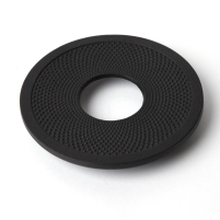 Une sous-théière japonaise en fonte avec motif traditionnel Arare (grêle) et pieds antidérapants en caoutchouc, fabriquée par la célèbre fonderie Nanbu Tekki Oigen d'Iwate. À utiliser comme support pour les bouilloires Tetsu-Kyusu ou Tetsubin dont la capacité est comprise entre 0,5 et 1 litre, et pour protéger les surfaces, par exemple contre les tâches de brûlure.