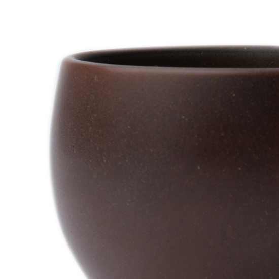 Charmante, handflächengroße Teetasse in klassisch brauner Nixing-Tonfarbe und mit matt glänzender, polierter Oberfläche. Die Teetasse wird in einer familiengeführten Töpferei in dritter Generation in Qinzhou, der Heimat der Nixing-Keramik, handgefertigt und eignet sich perfekt zum Servieren aller Arten von chinesischem Tee und mehr.