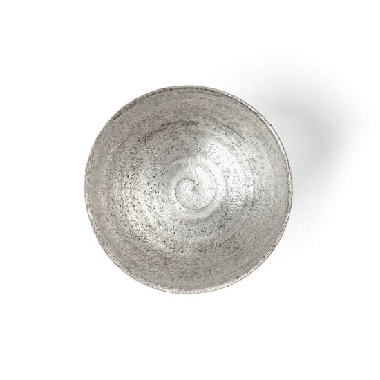 Eine aparte Keramikschale, handgefertigt vom renommierten zeitgenössischen Künstler Takashi Endoh. Die charakteristische, steinähnliche Haptik in silberner, metallischer Glasur fasziniert im Kontrast zu der klassischen, filigranen Form. Womöglich avanciert es zu Ihrem Lieblingsstück, da es so vielseitig eingesetzt werden kann: beim Anrichten von Beilagen, beim Verzehr von Zubereiteten oder als Teeschale.